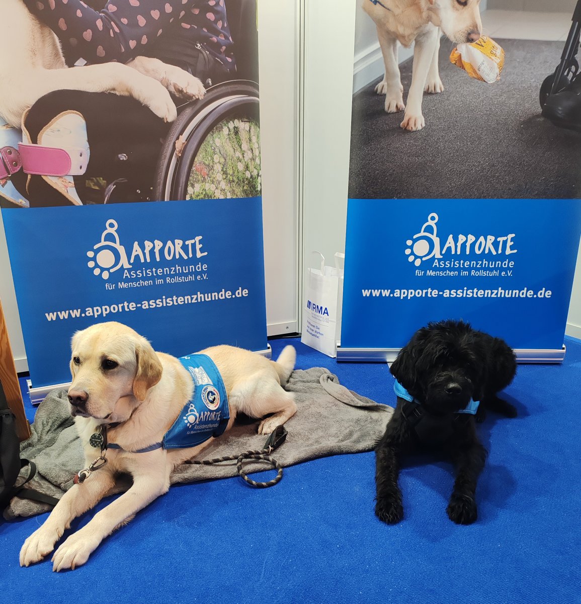 Am Mittwoch, den 25.06.2025 haben wir uns in den Zug Richtung Bremen gesetzt und sind von Leipzig ohne Umstieg gut in Bremen angekommen. Am Donnerstag stand den ganzen Tag die Standbetreuung von Apporte für Menschen im Rollstuhl e.V. und die Vorführung auf dem Programm. Jette zeigte mal wieder ihr Können und konnte mit den speziellen Befehlen - wie Gehhilfe aufheben und Einkaufstasche aufhalten - überzeugen. Am Freitag sollte uns der Zug um 13 Uhr wieder zurück nach Leipzig bringen. Leider ist der Zug aufgrund von Unwettern am Vortag ausgefallen und so haben wir spontan auch am Freitag teilweise die Standbetreuung mit übernommen und haben auch nochmals bei der Vorführung mitgewirkt. Gegen 16 Uhr ging unser Zug zurück nach Leipzig und eine tolle IRMA 2025 ging für uns zu Ende, wo wir auch viele andere Teams von Apporte wieder getroffen haben.