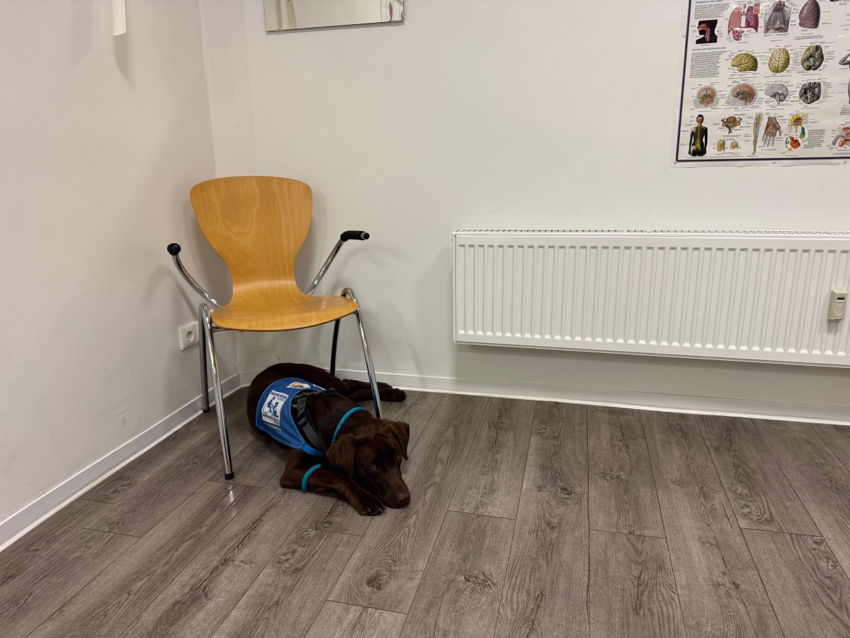 Auch bei der Physiotherapie ist Sammy stets mit dabei. Dort wird er jedes Mal freudig erwartet – und er wartet die 40 Minuten meiner Sitzung immer ganz geduldig und lieb.