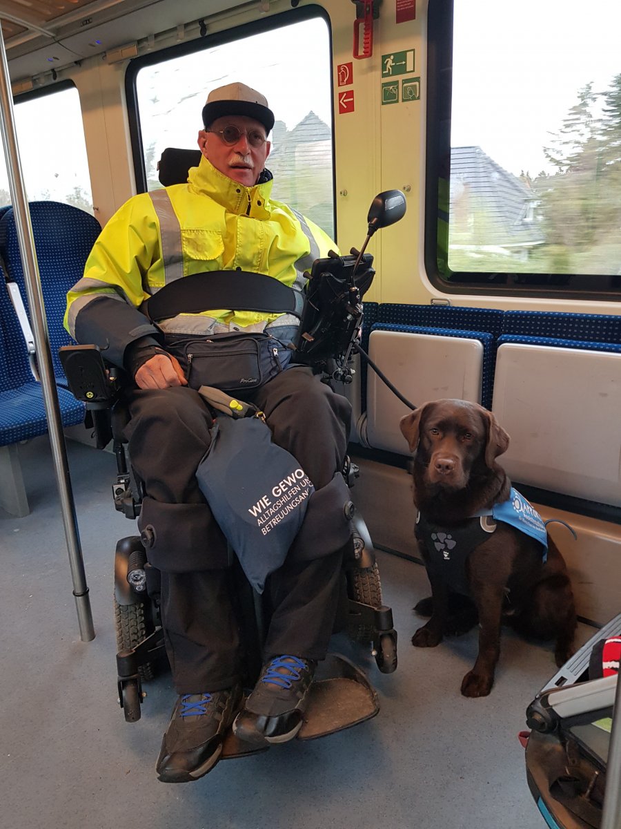 Natürlich begleitet mich Sage zu Physiotherapie oder Ärzten, zum Einkaufen, zum Gruppentreffen nach Heide… Außerdem haben wir im Heide Moor an einer Rolli Wanderung teilgenommen, wo der Heimatverein die Führung und Erklärung der Sehenswürdigkeiten übernommen hat, was sehr informativ war.